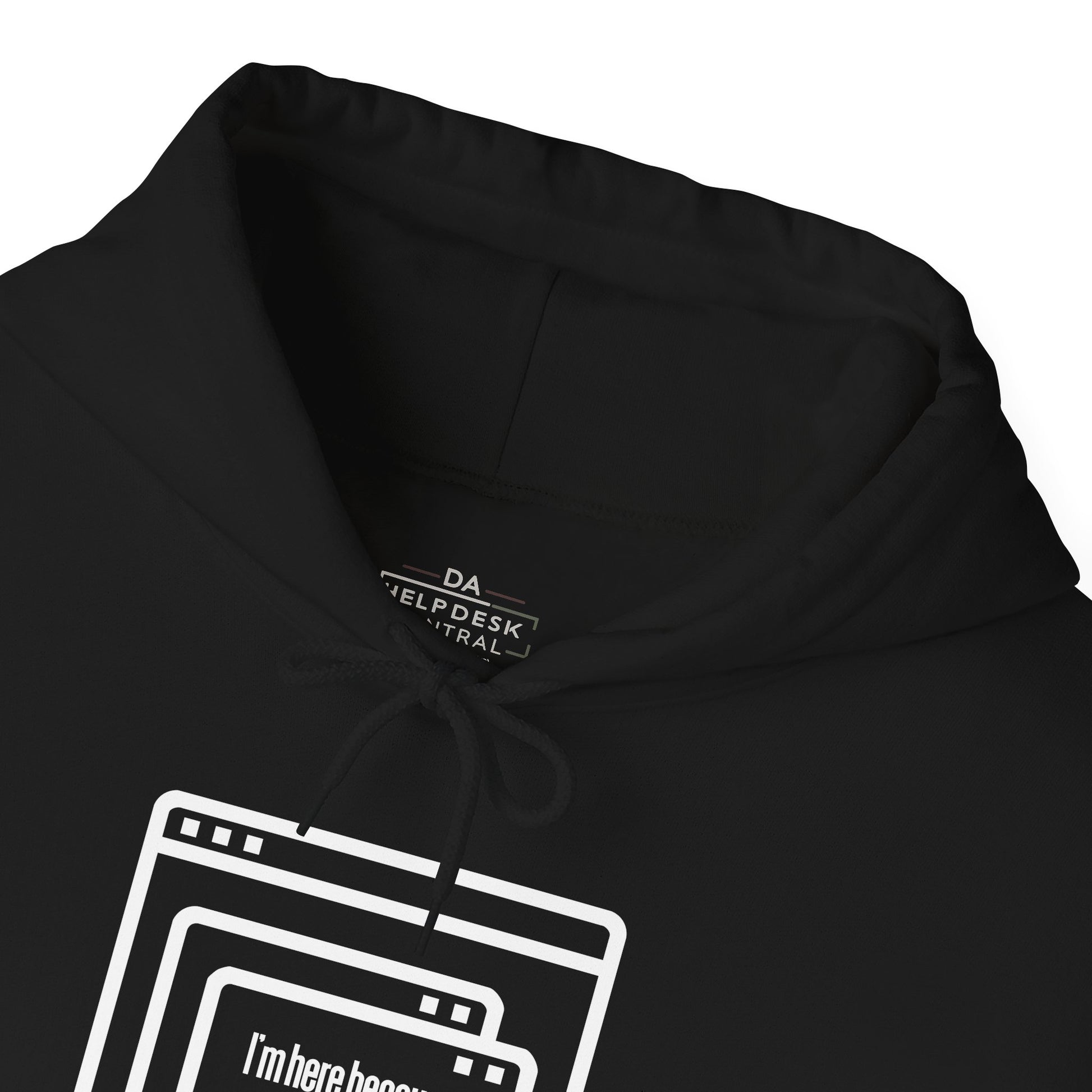 Show off your IT humor with this CLICKED Hoodie with the words 'i'm here because you clicked something' designed for IT professionals. This Hoodie gives off a casual and humorous vibe, perfect for everyday wear or as a conversation starter at tech-related events. Ideal for IT professionals and computer enthusiasts. Relevant for casual wear, tech-related events, IT-themed occasions