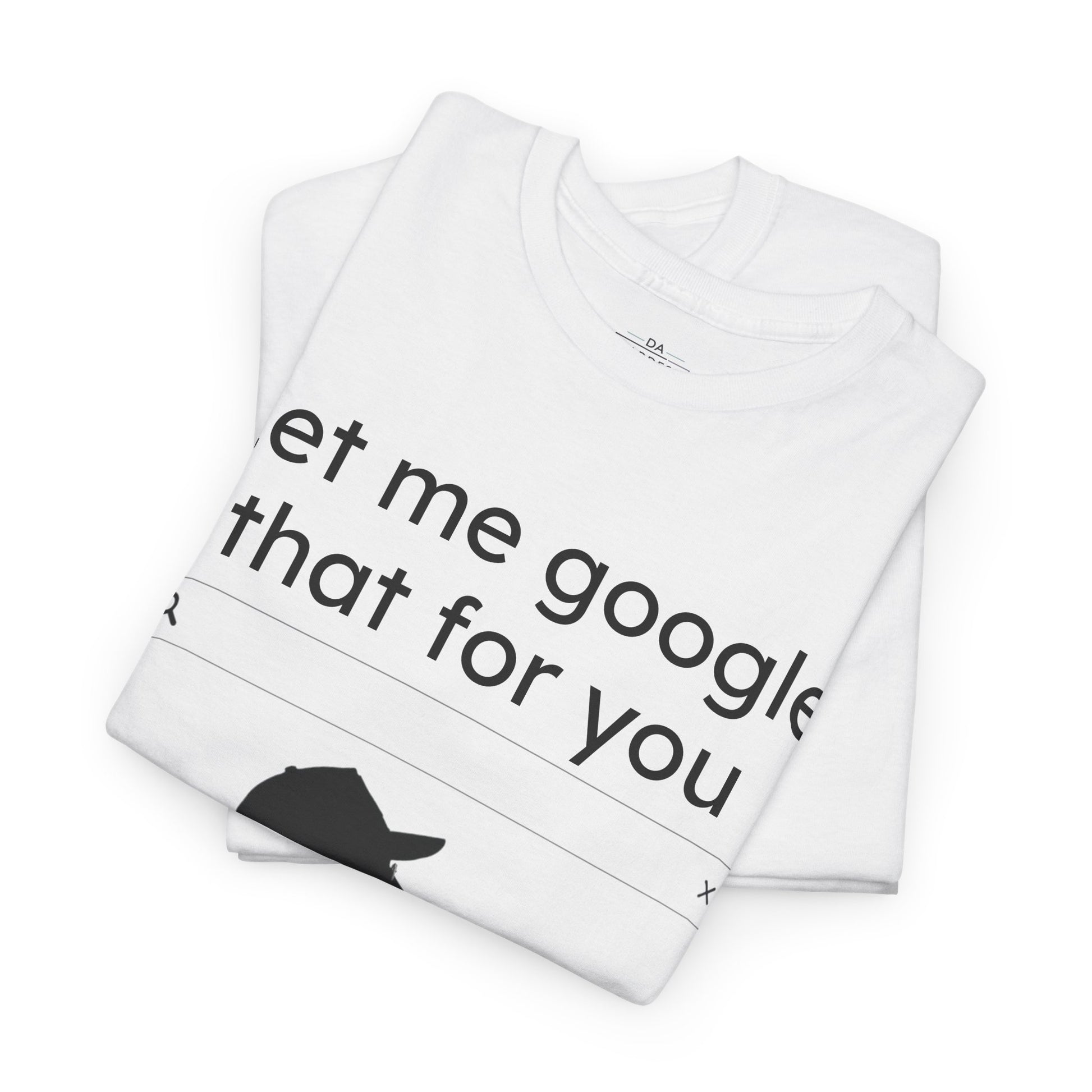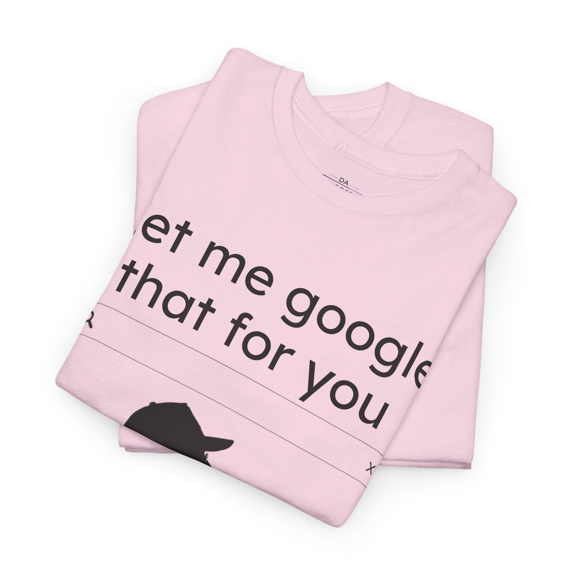 A funny 'let me google that for you' print T-shirt perfect for IT professionals. This shirt adds a touch of humor to your wardrobe and is a great conversation starter. It's relevant for tech-savvy individuals and can be worn casually or to tech-related events. Ideal for birthday gifts, geek celebrations, and everyday wear.